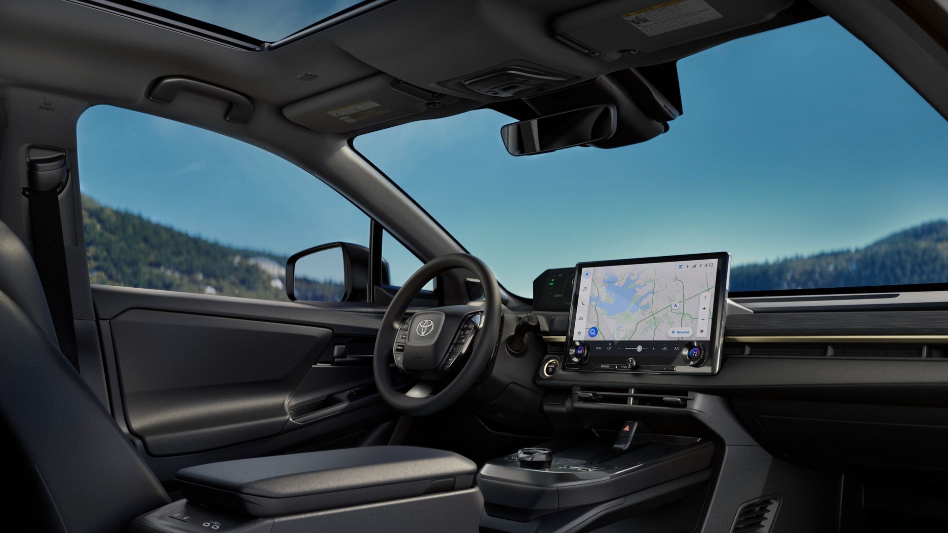 The 2026 bZ showcases Toyota's latest connectivity and safety technologies. Every model features the Toyota Multimedia system with a new 14-inch touchscreen, integrating wirelessly with both Apple CarPlay and Android Auto. The touchscreen responds to familiar smartphone gestures, while the "Hey Toyota" voice assistant handles navigation, climate control, and audio adjustments through simple voice commands.